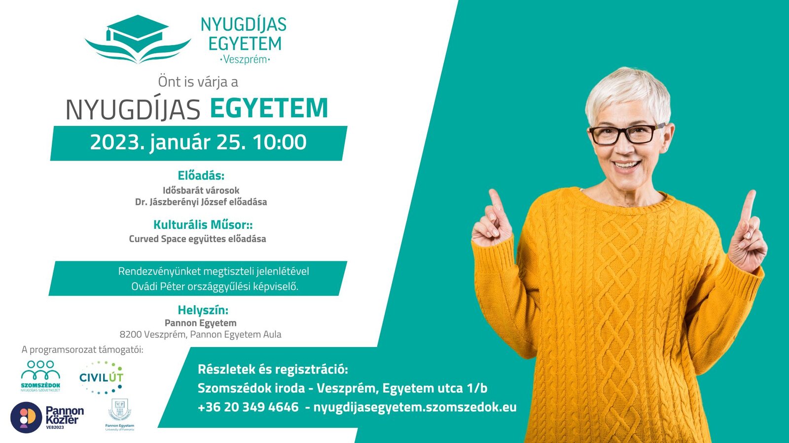 A Pannon Egyetem, az Északi Szomszédok Nyugdíjas Szövetkezet, a Civilút Alapítvány és a Pannon KözTér közös rendezvénye, kulturális műsorral egybekötve.